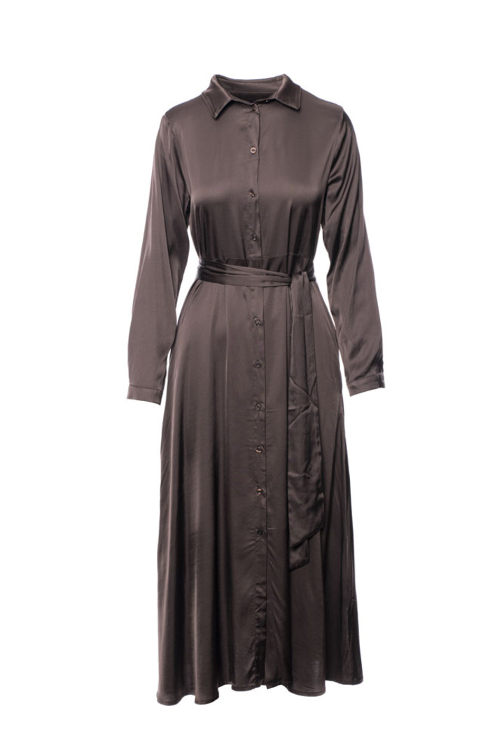 LONG SHIRT DRESS WITH BELT AND SIDE POCKETS