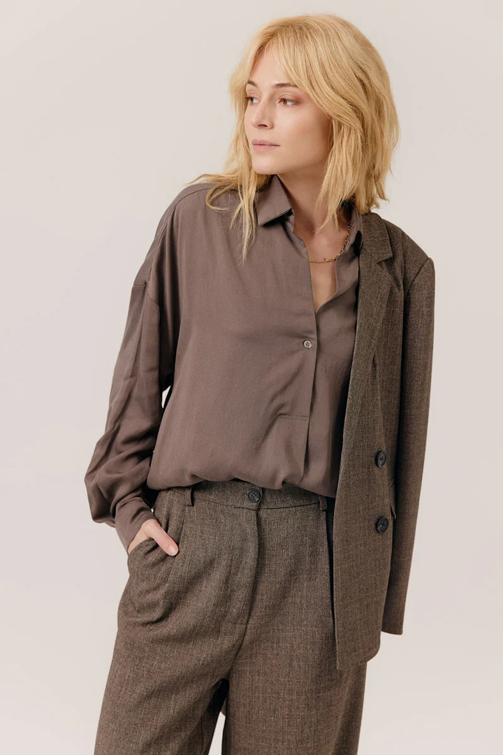 This fluid lyocell shirt features a relaxed fit and long buttoned sleeves. Its soft, lightweight drape provides optimal comfort, while its classic collar and discreet button placket add an elegant and versatile touch to your outfit.