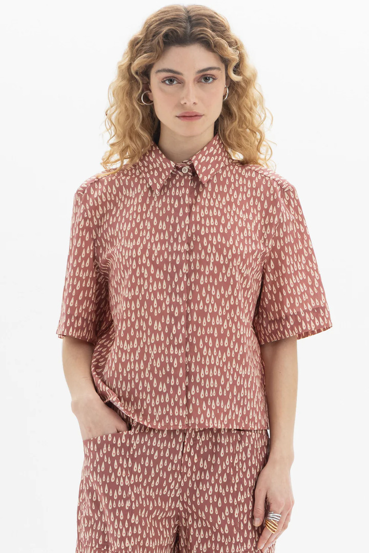 Short sleeve shirt with a classic collar and front button closure. Designed in a relaxed fit with an all-over abstract drop print for a modern statement.