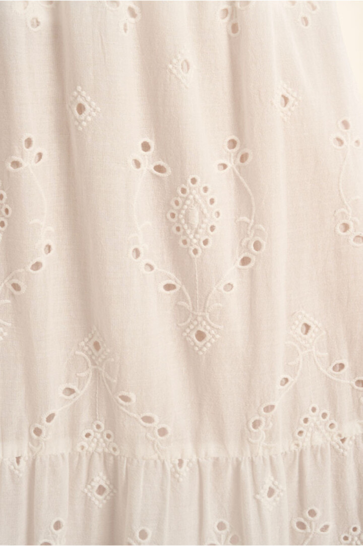 -Long openwork skirt, with broderie anglaise