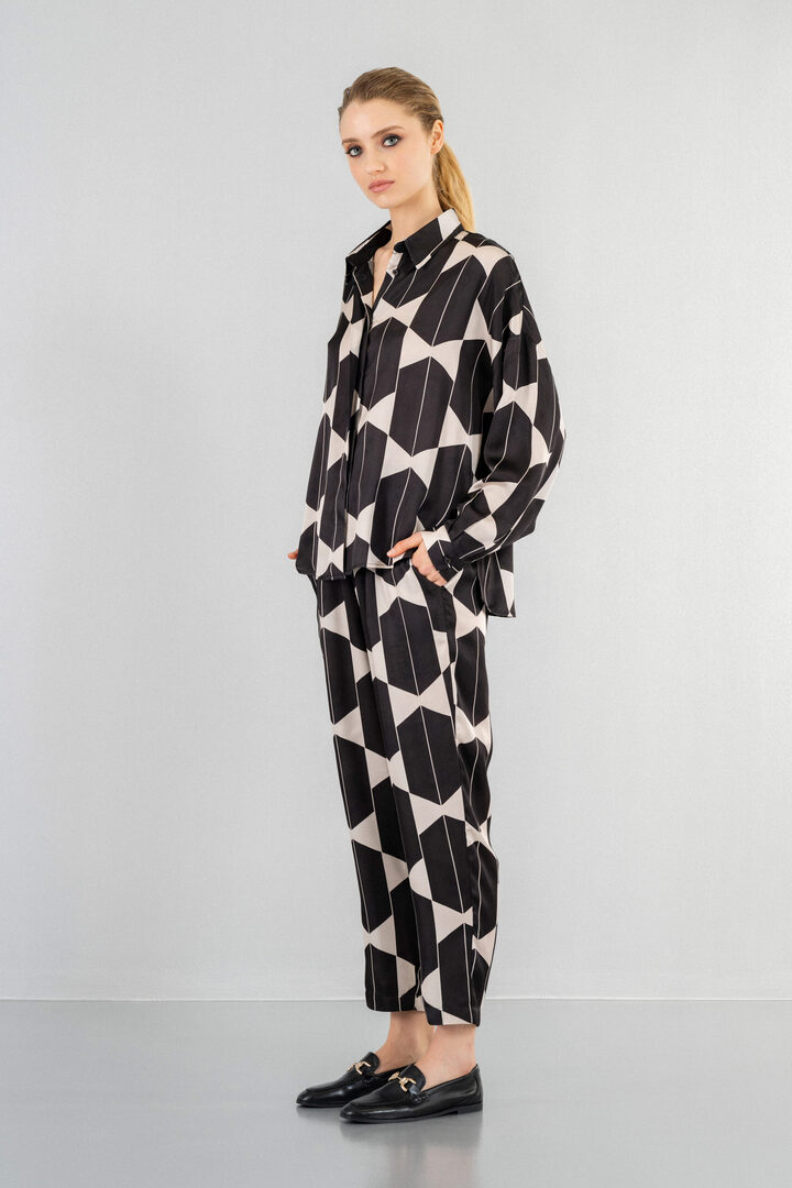 SATIN PRINT CROPPED SHIRT BLUE BLACK