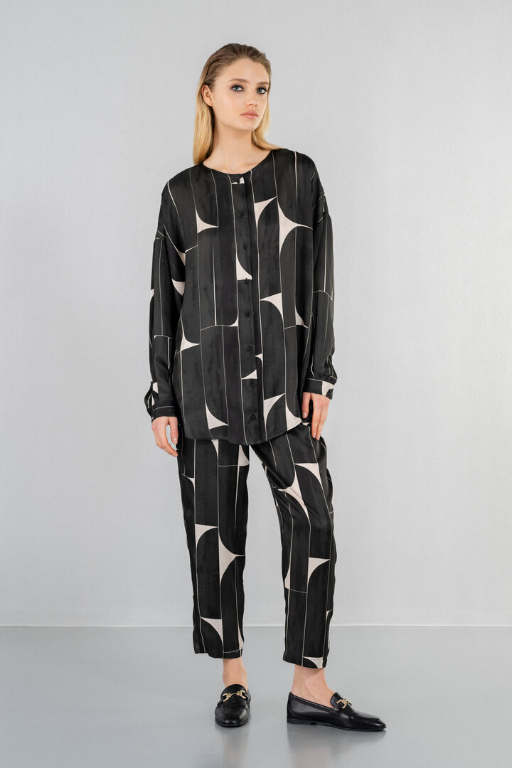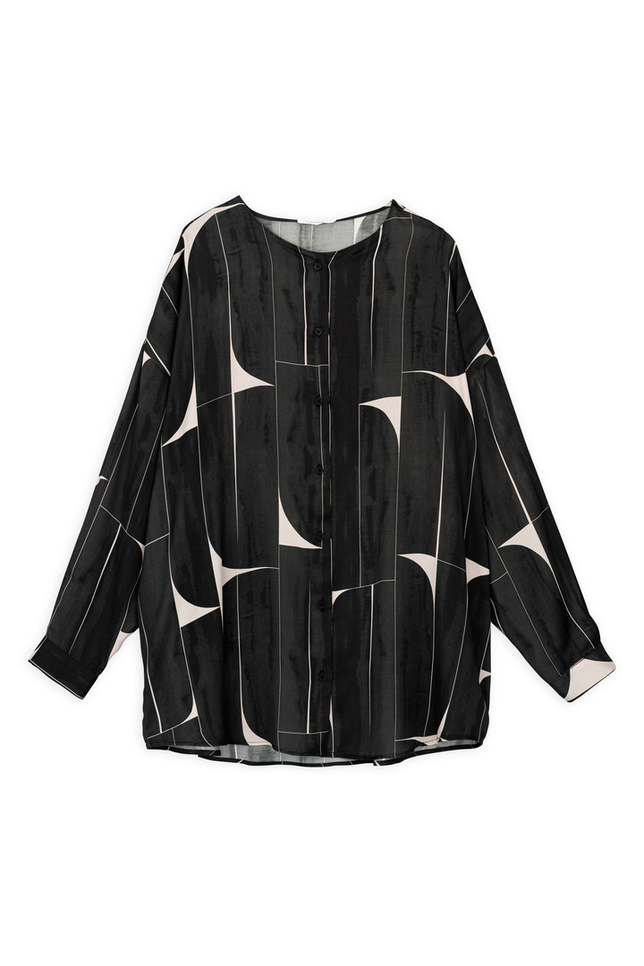 SATIN PRINT OVERSIZED SHIRT OFF BLACK