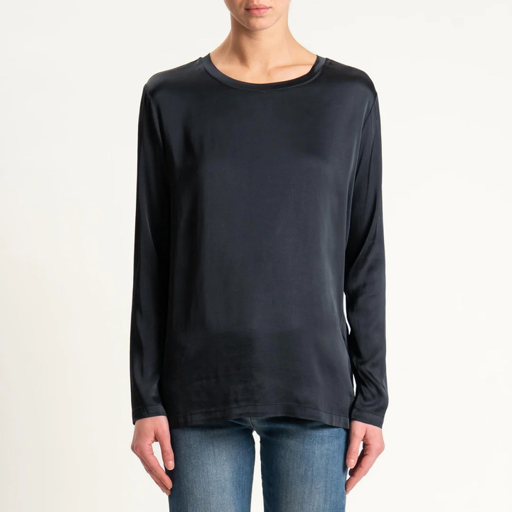 Long-sleeved stretch satin blouse - black