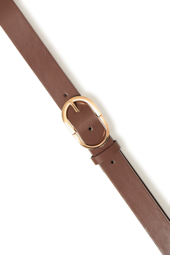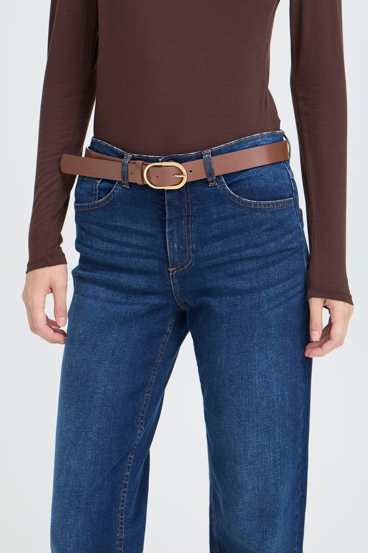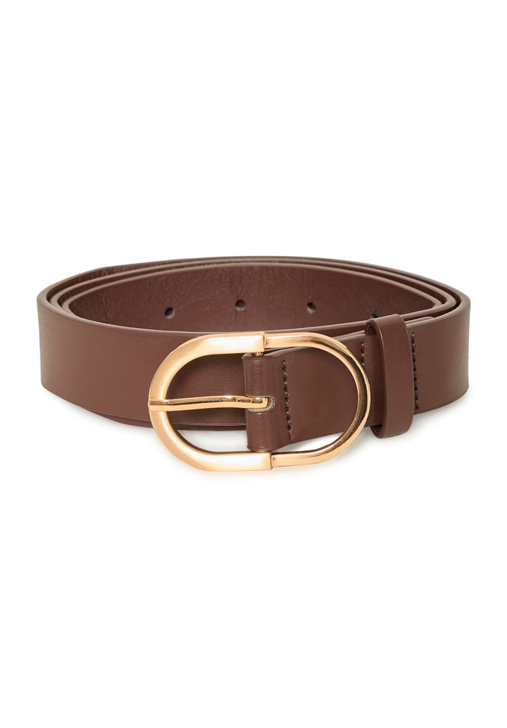 This women's belt has a classic, adjustable fit and a round metal buckle for a stylish look. Perfect for both pants and dresses, it provides comfort and an elegant finish for any occasion.