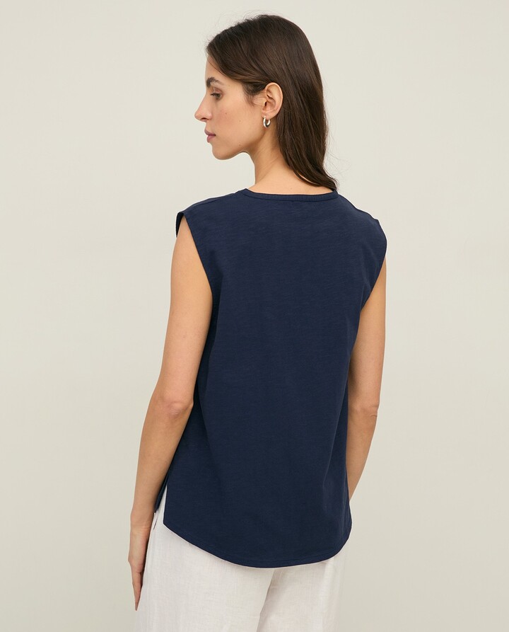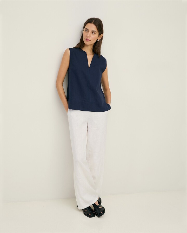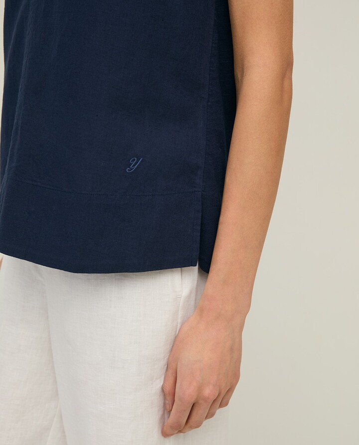 Sleeveless linen and cotton blouse Navy Blue