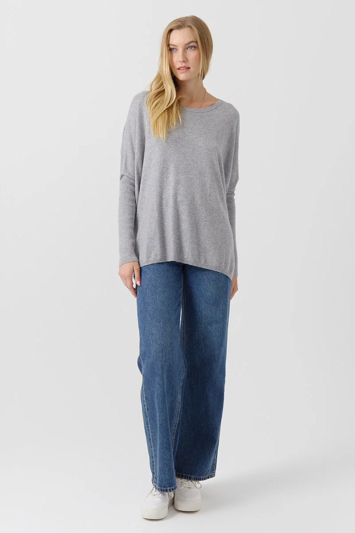 Long-sleeved crew neck sweater. Loose fit with a rounded hem. Lightweight and soft fabric.