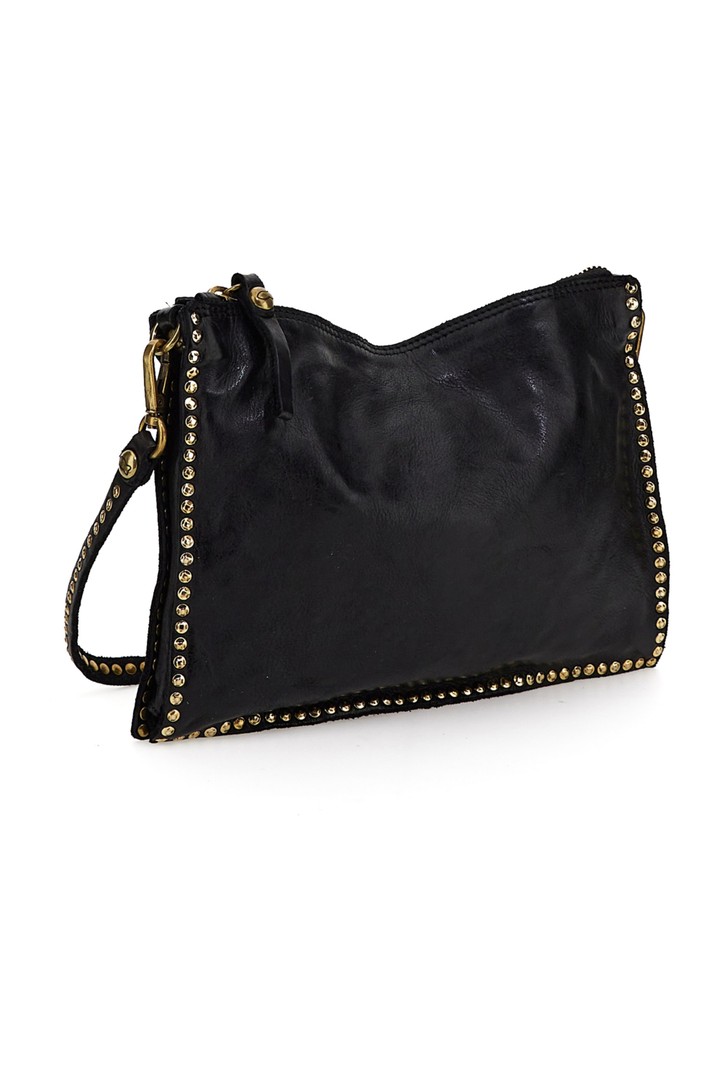 KURA Cross-body bag in black leather with rivets