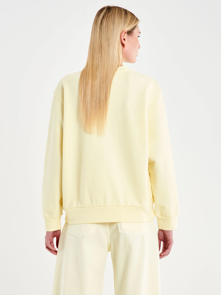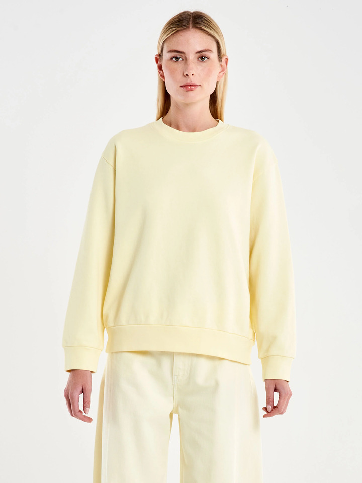 Basic crew neck sweatshirt. Ribbed knit trim detail.