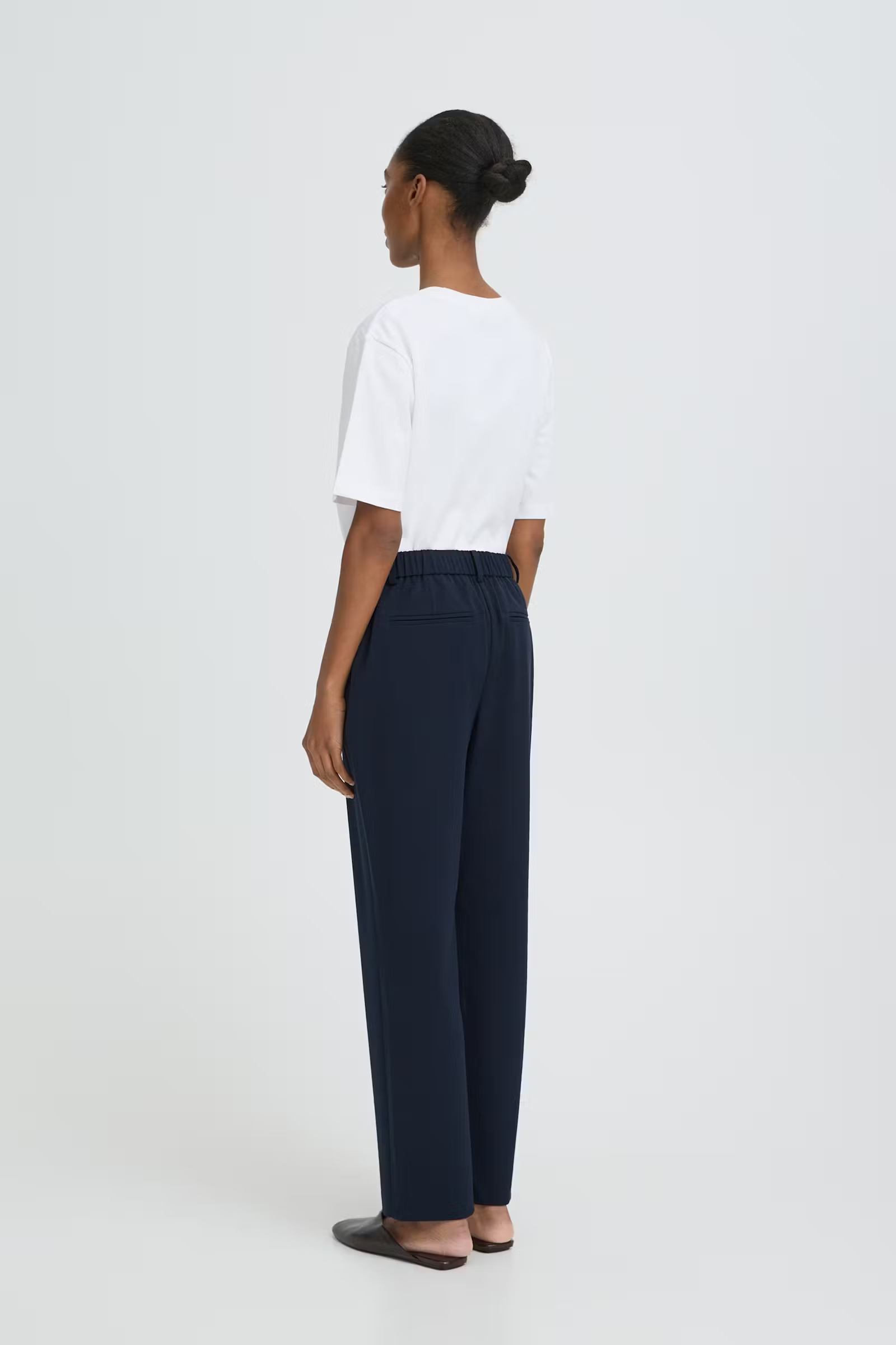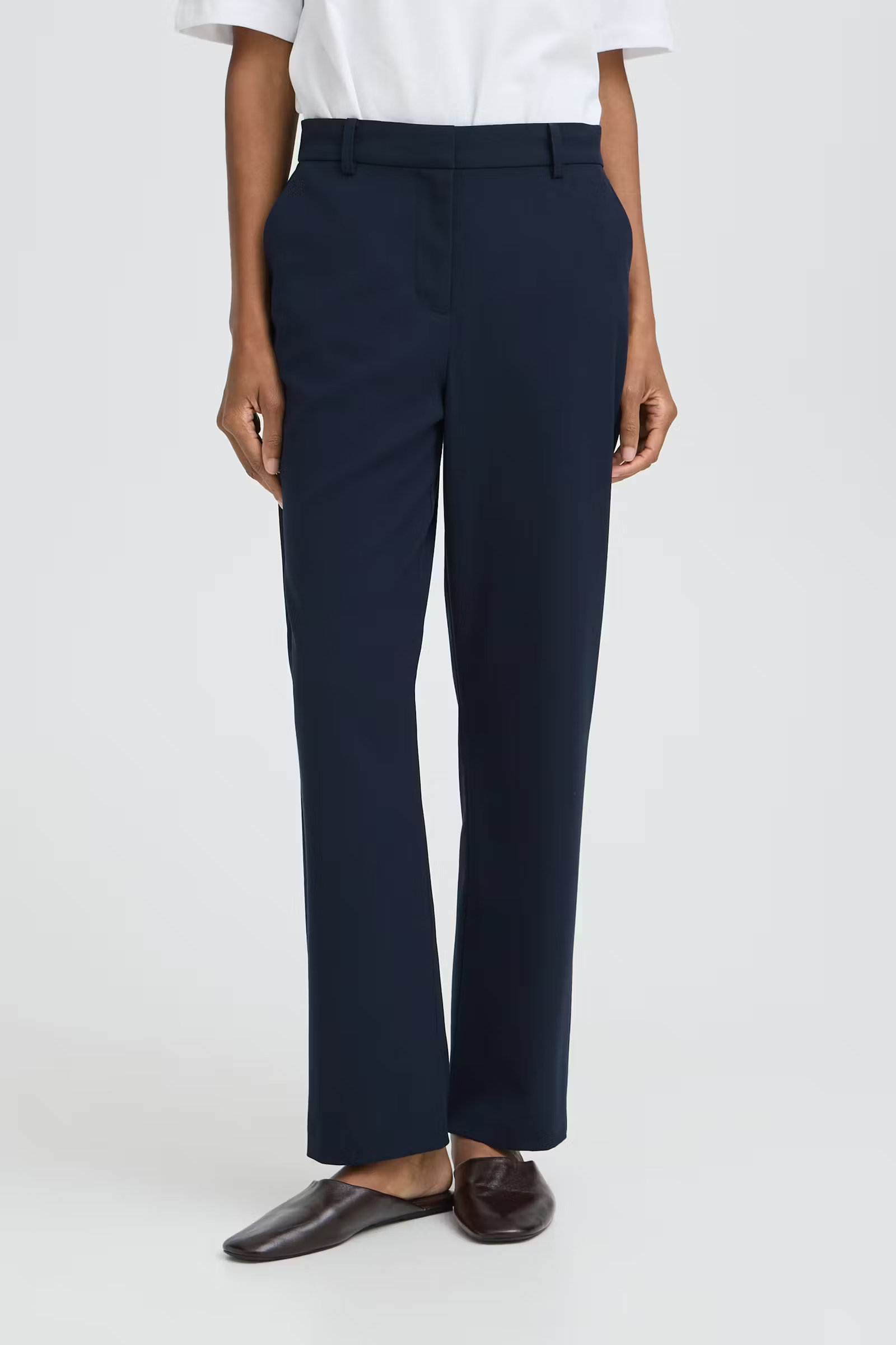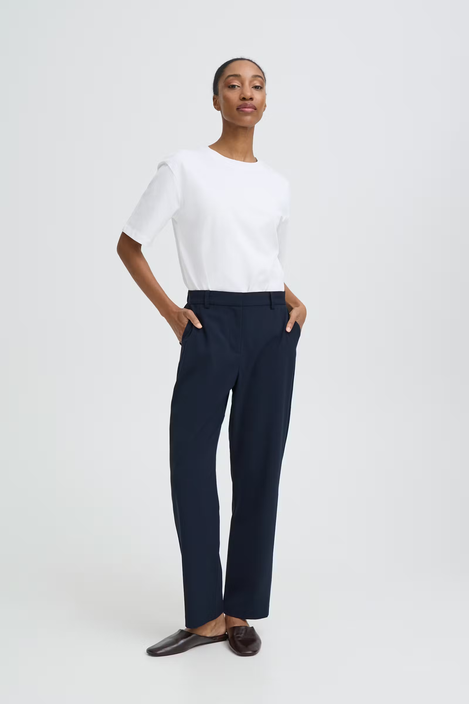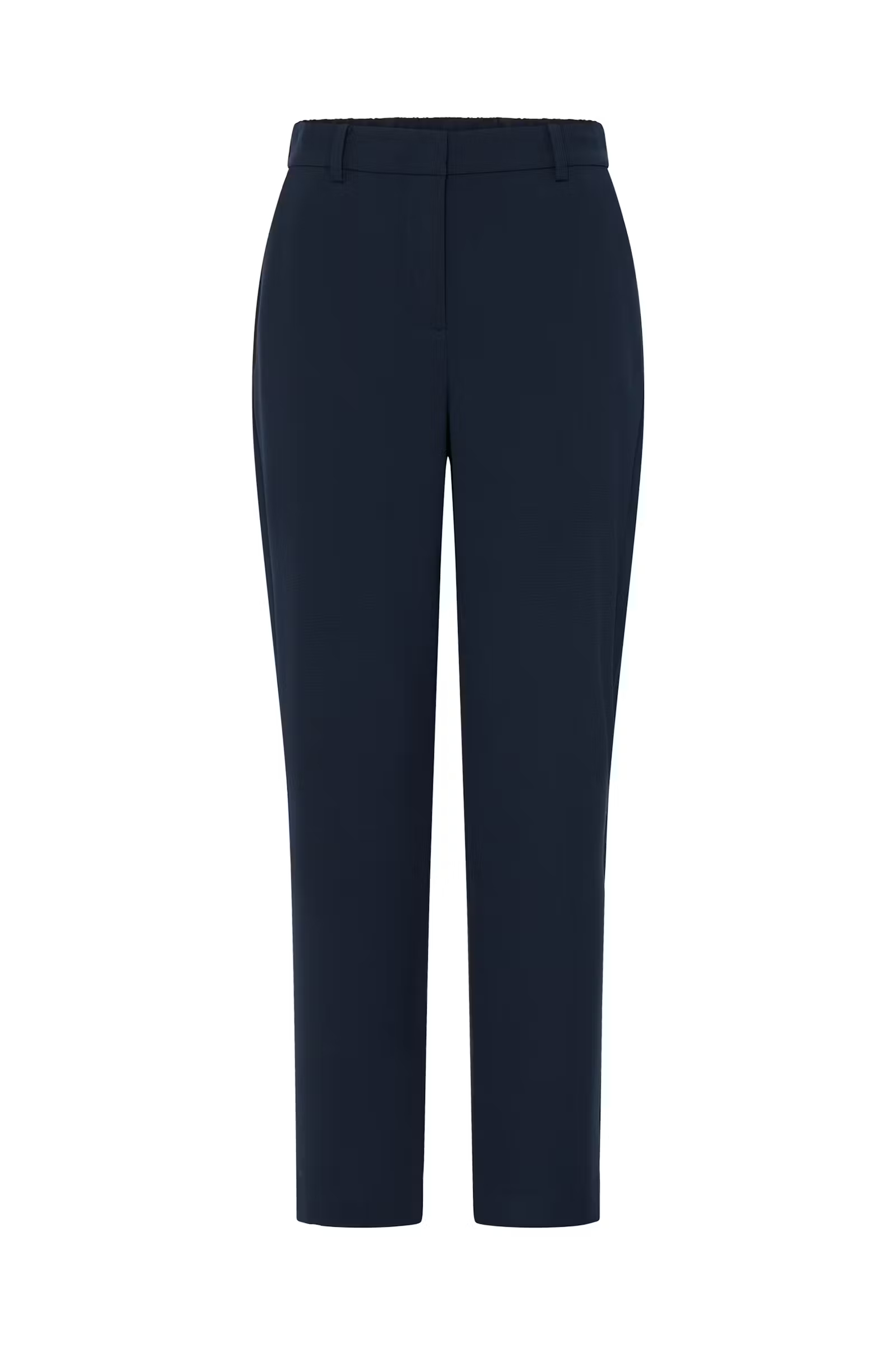 Women's ankle-length tailored pants offer a modern straight fit with a mid-rise waist. Designed with practical belt loops and side pockets, these trousers combine comfort with a clean, timeless silhouette for versatile styling.