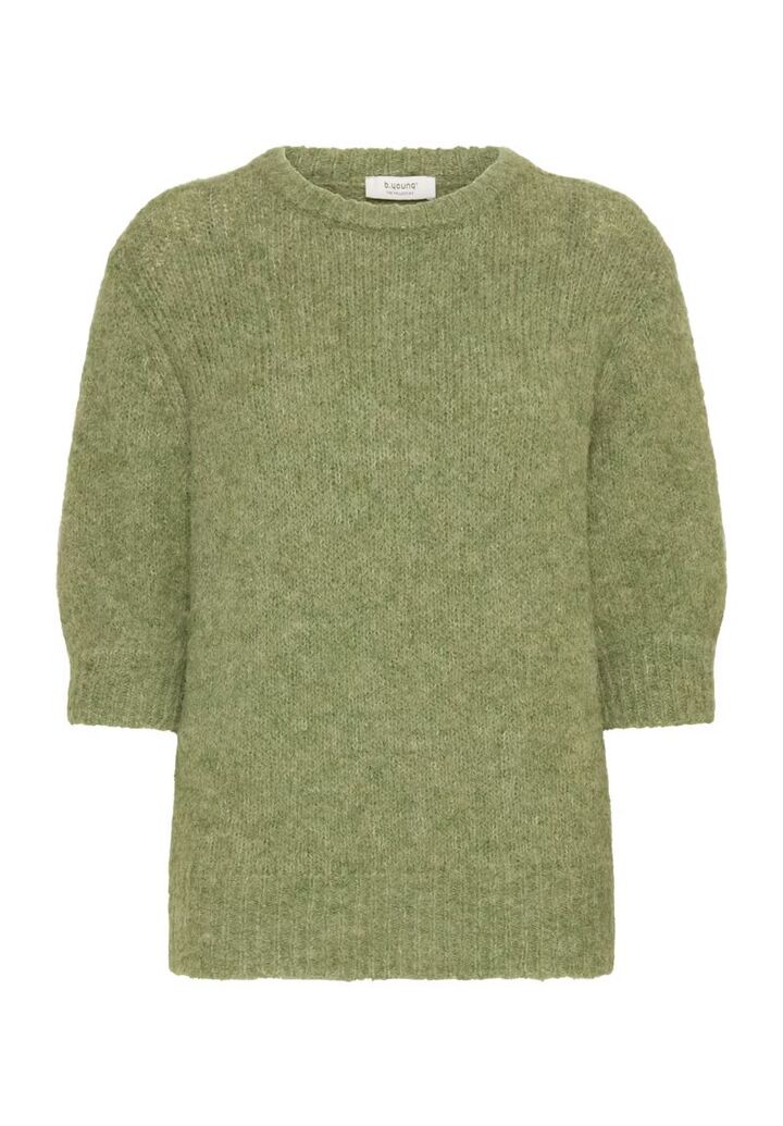 Women's knitted sweater with a relaxed fit, ribbed round neck and three-quarter sleeves. Comfortable and suitable for various occasions.