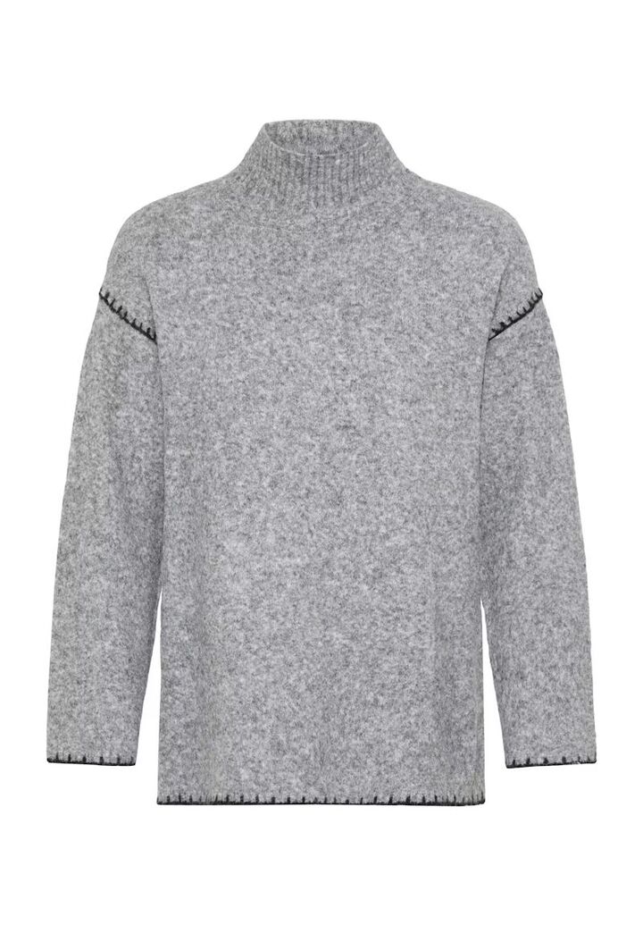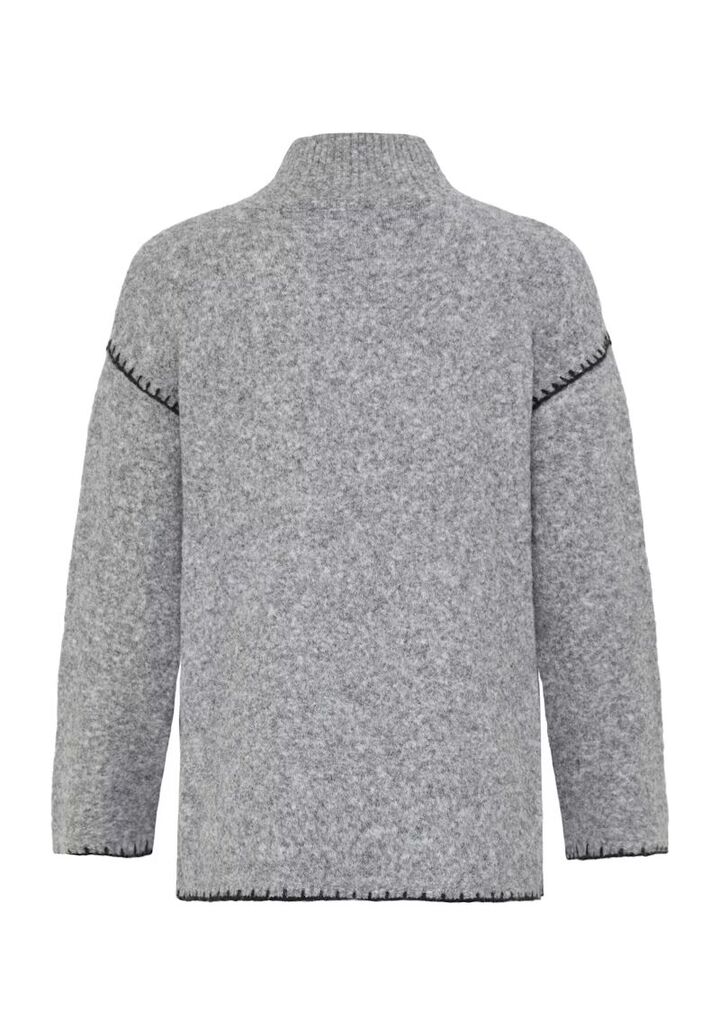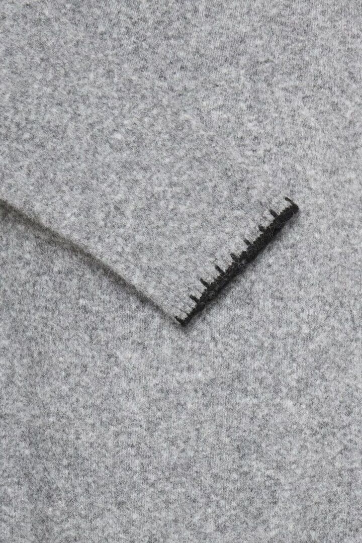 A straight-cut sweater with a soft, textured surface and a relaxed neckline. Long, wide sleeves and contrast stitching along the shoulders and edges give a modern look.