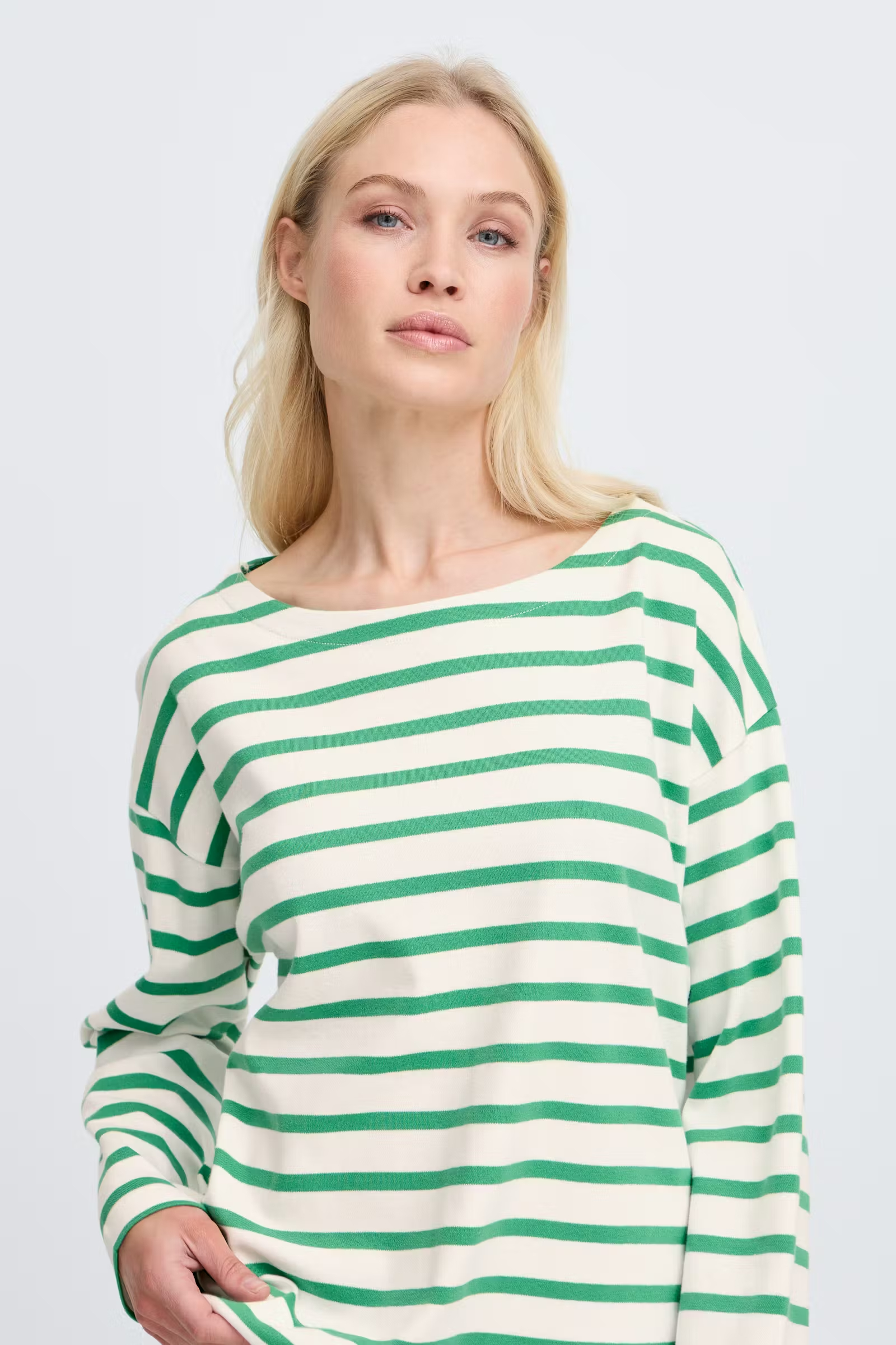 Striped long-sleeved top with a relaxed fit and boat neck. Dropped shoulders and a straight hem give a relaxed and modern look.