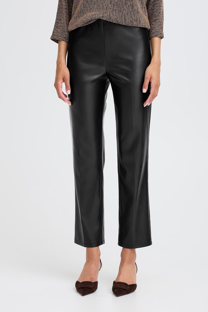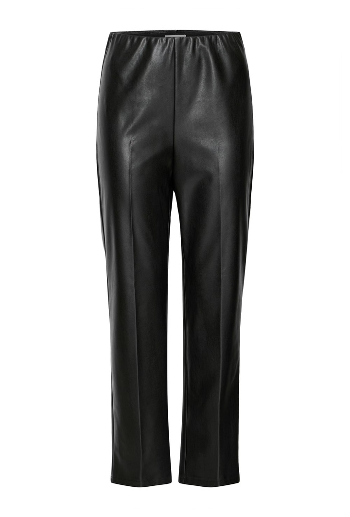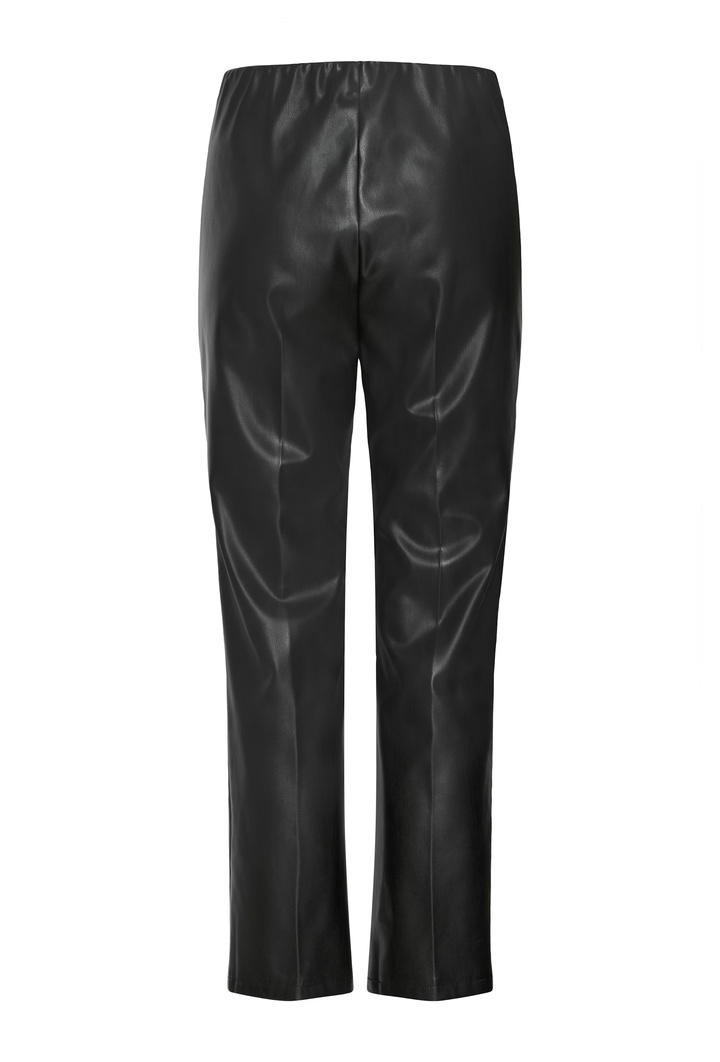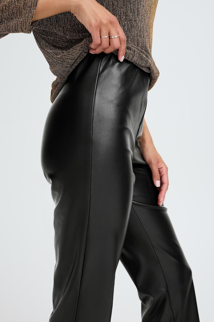 Discover women's faux leather trousers with a straight fit and elastic waist. Comfortable and stylish design allows for flexible use for various occasions.