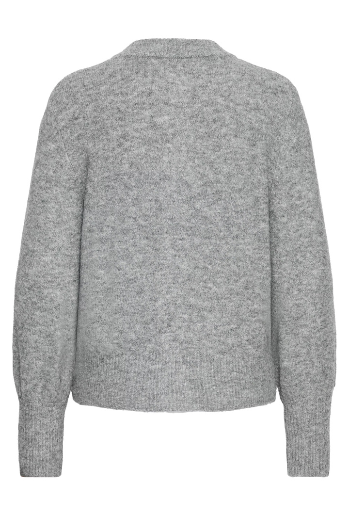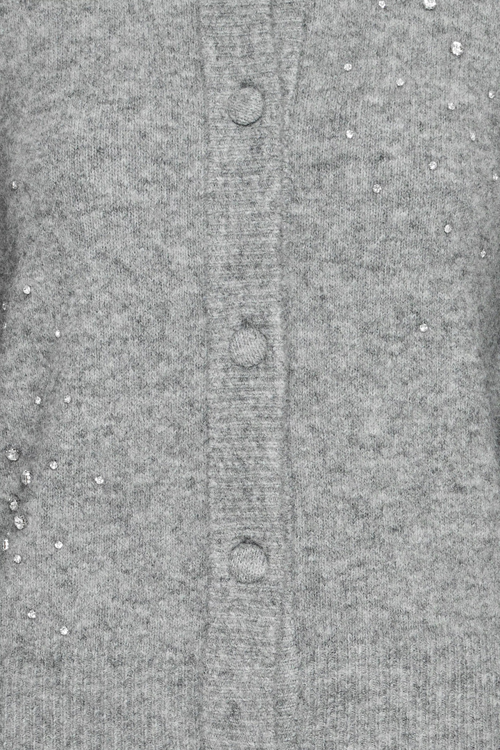 This cardigan has a loose fit, round neck and long sleeves with subtle embellishments. Comfortable and versatile for various occasions.
