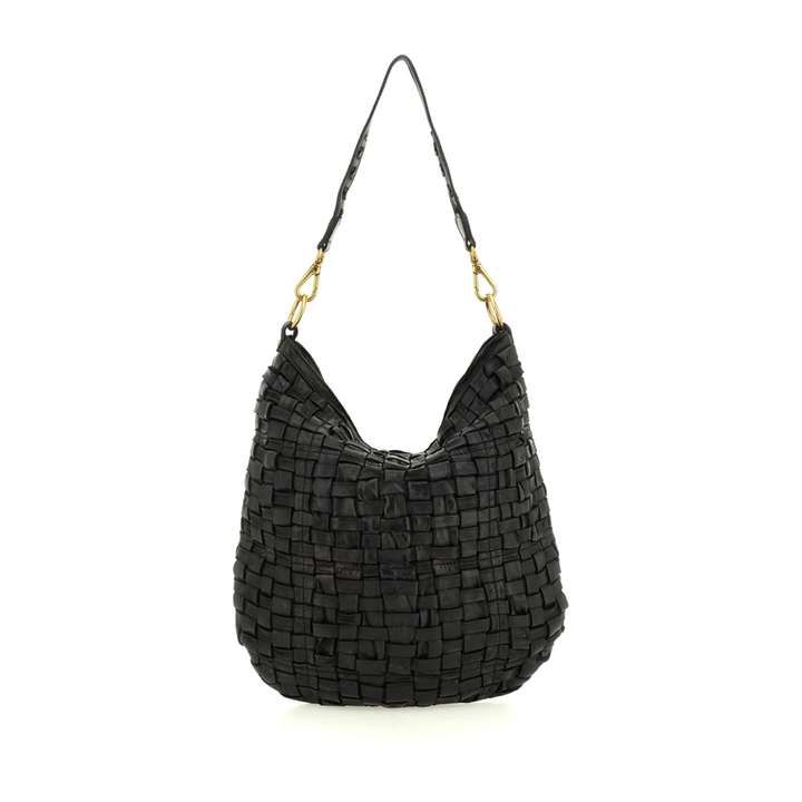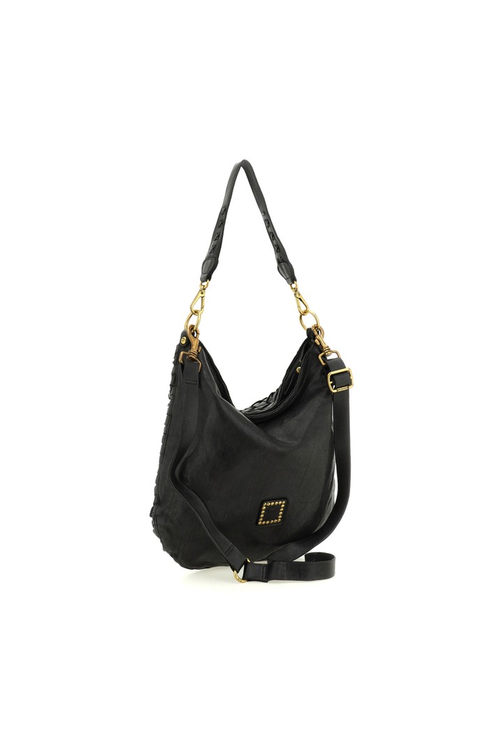 Shopping Edera in black garment-dyed cowhide leather in apricot color.