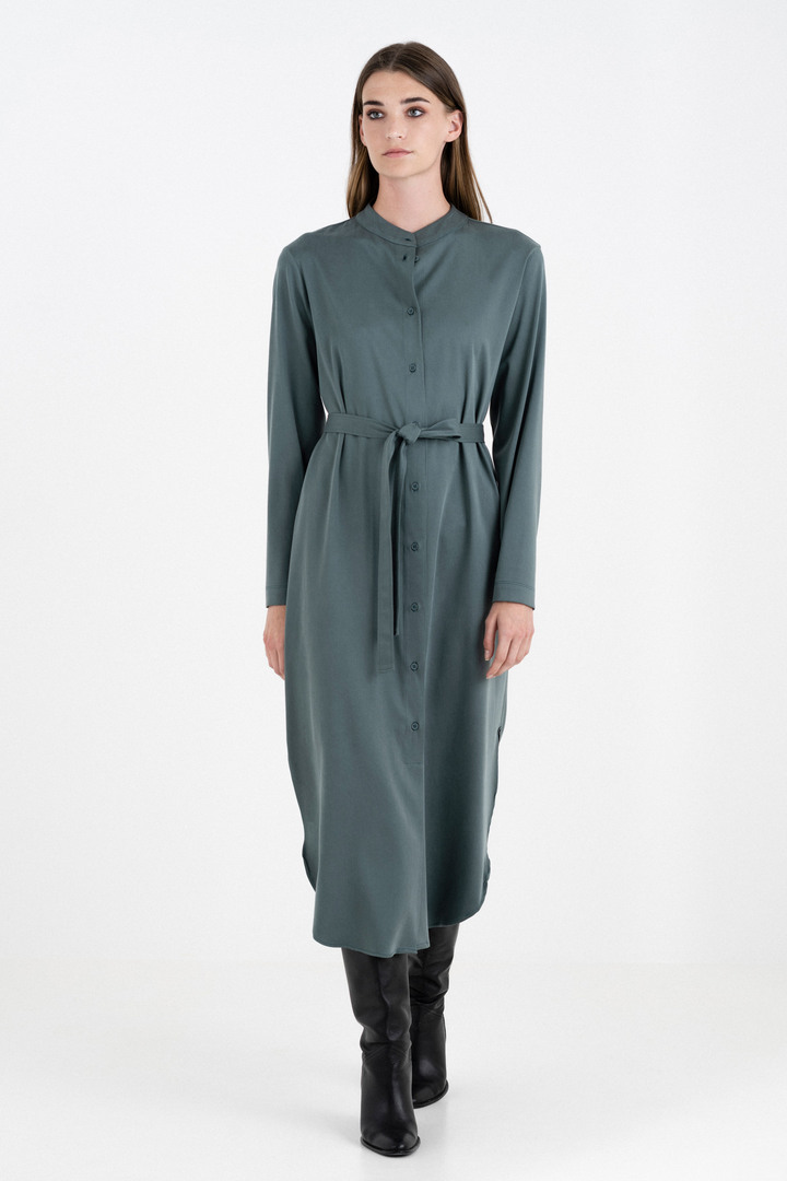 SATIN SANDWASHED SHIRTDRESS GREEN