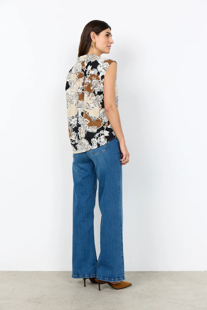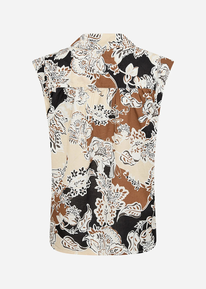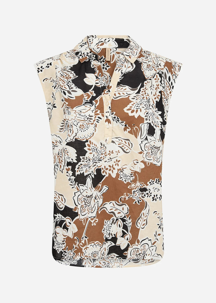 SC-FALDINE 1 is a Blouse crafted from 100% organic cotton. This elegant blouse features a stylish collar, button accents, and a unique floral print throughout. Pair it effortlessly with tailored pants or a casual skirt for a cool, stylish look.