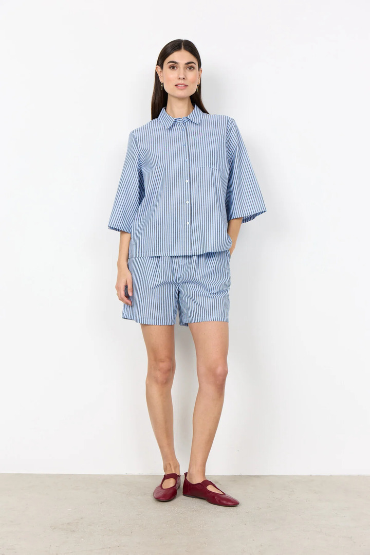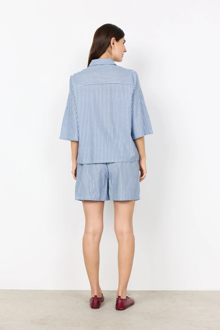 SC-FELICE 3 Shirt is crafted from 100% organic cotton. It features a classic collar, button-down front, three-quarter sleeves, and a stylish striped print. This elegant shirt is perfect for pairing with tailored trousers or your favorite denim.
