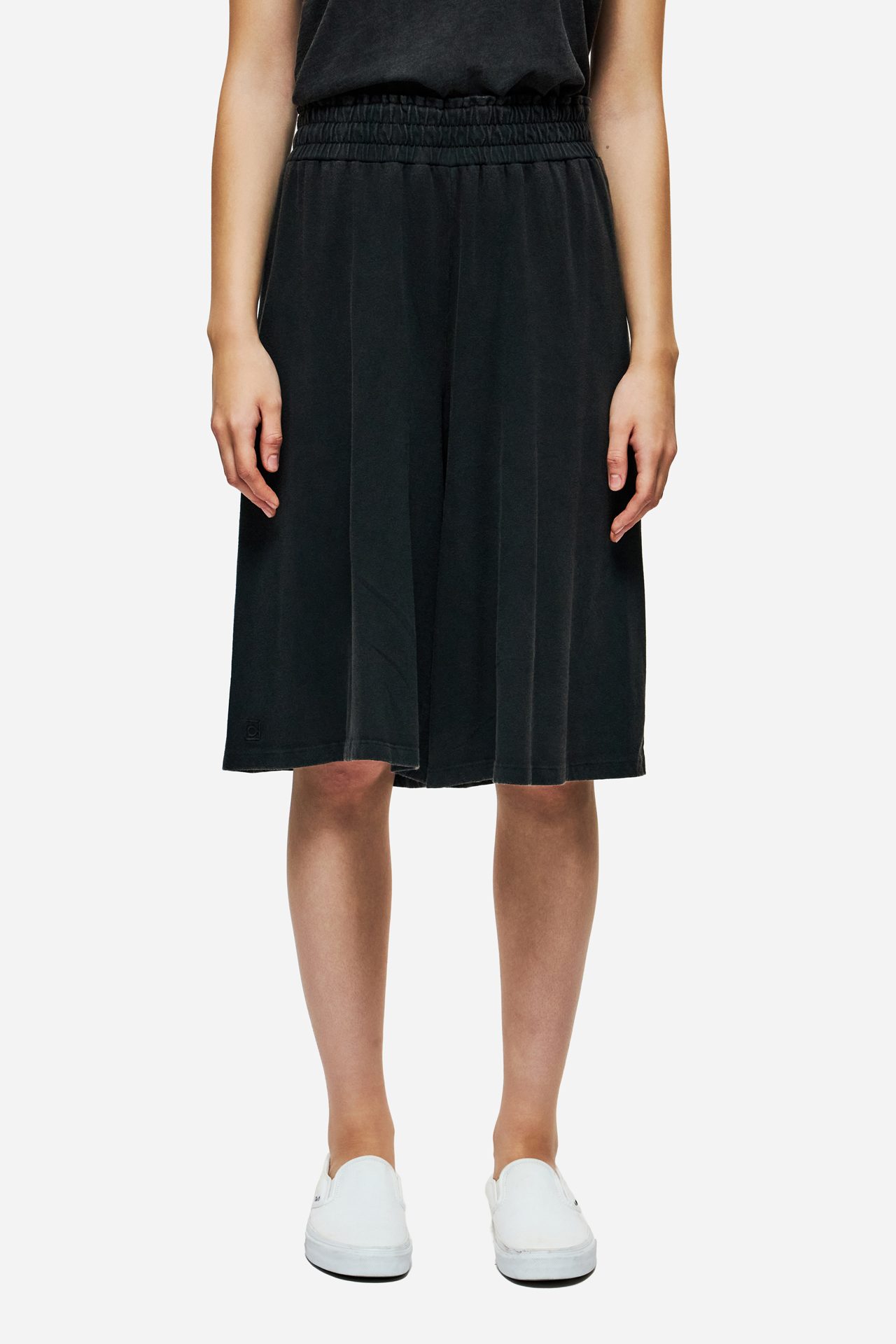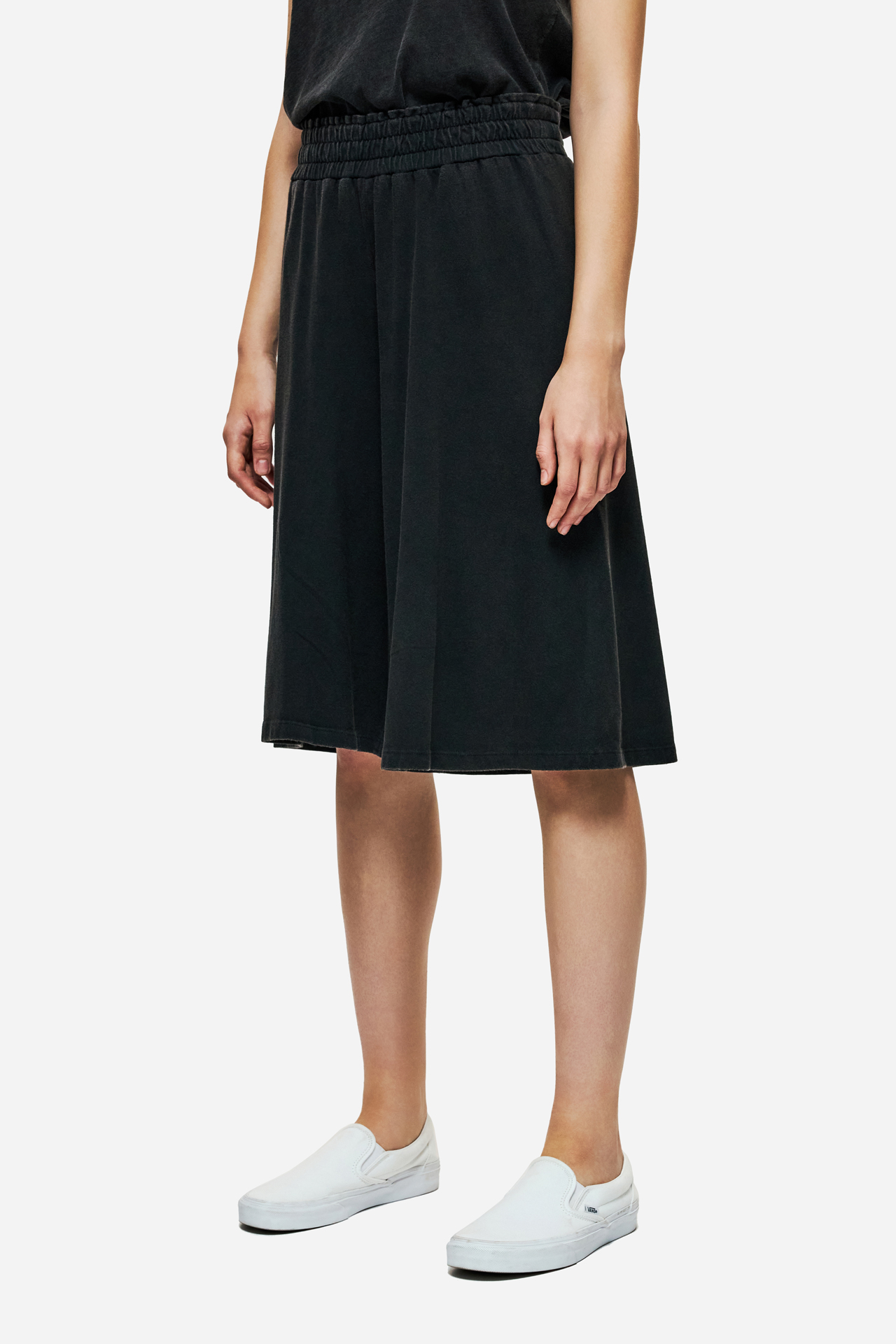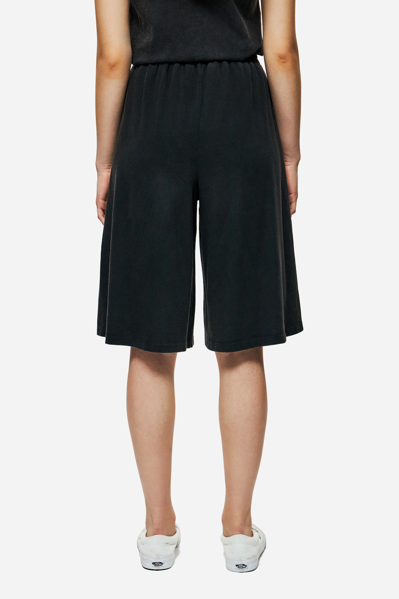 This high-waistedlong sweatbermuda with an elastic waistband offers the perfect balance between a bold look and ultimate comfort, adding a distinctive touch to your summer styling without compromise.