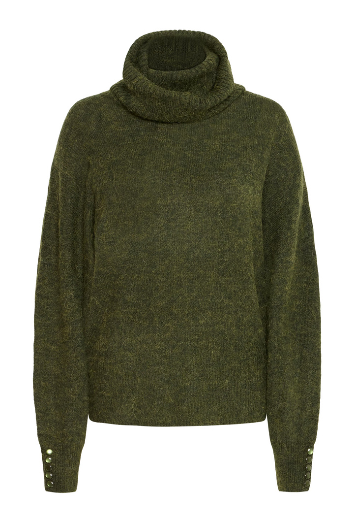 This women's turtleneck sweater features a relaxed fit, cozy high neckline, and long sleeves with decorative buttons. Designed for comfort and easy layering, it offers timeless style ideal for both everyday wear and smart-casual looks.