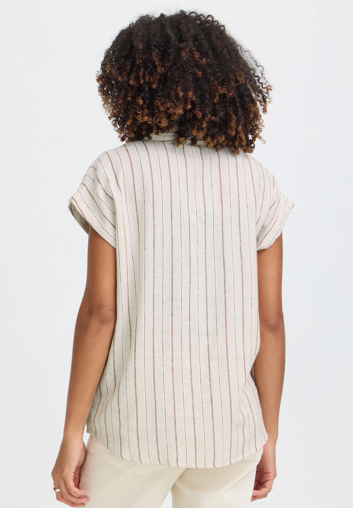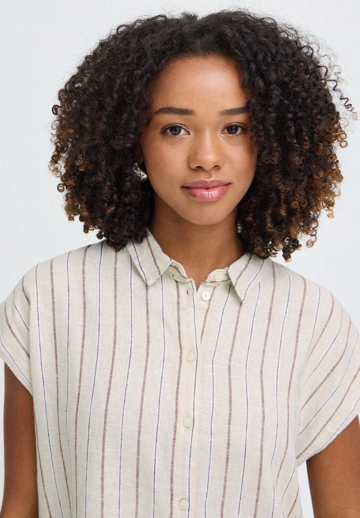 IHLINNO Short-sleeved blouse Brown Stripe / White