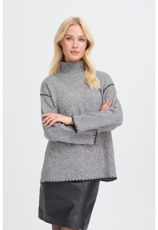 Women's sweater with a round neck and a relaxed fit. Comfortable, soft knit, dropped shoulders and r..