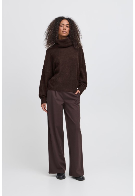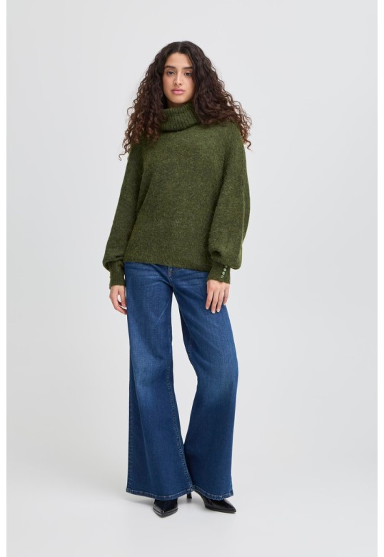 This women's turtleneck sweater features a relaxed fit, cozy high neckline, and long sleeves with de..