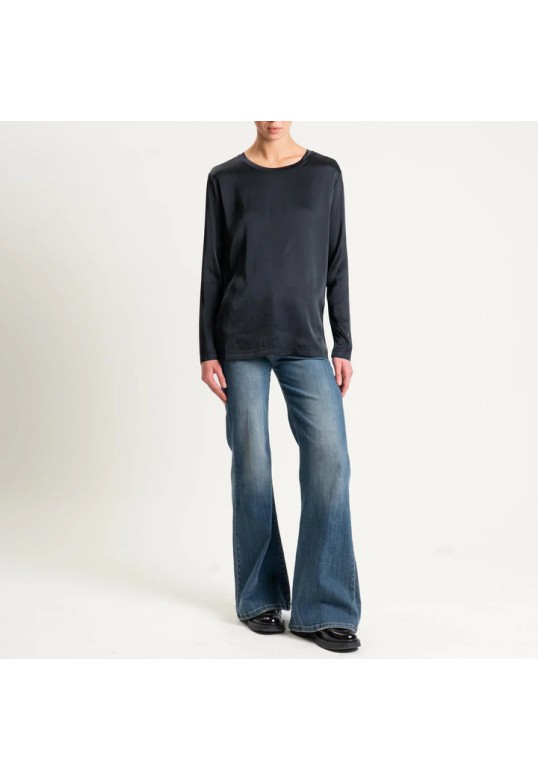 Slim Fit long sleeve top with raw cut details and decorative stitches for unique style. Made of 100%..