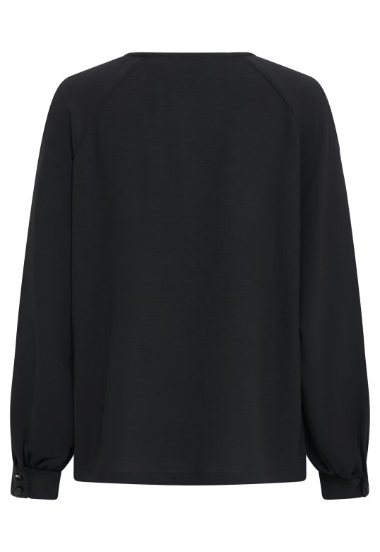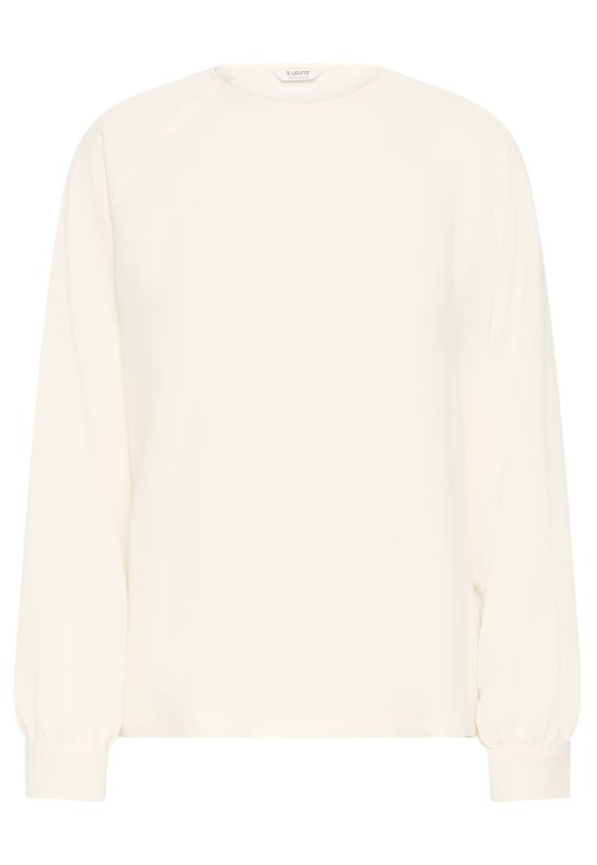 This long sleeve blouse features a straight silhouette with a round neckline and subtle raglan seams..