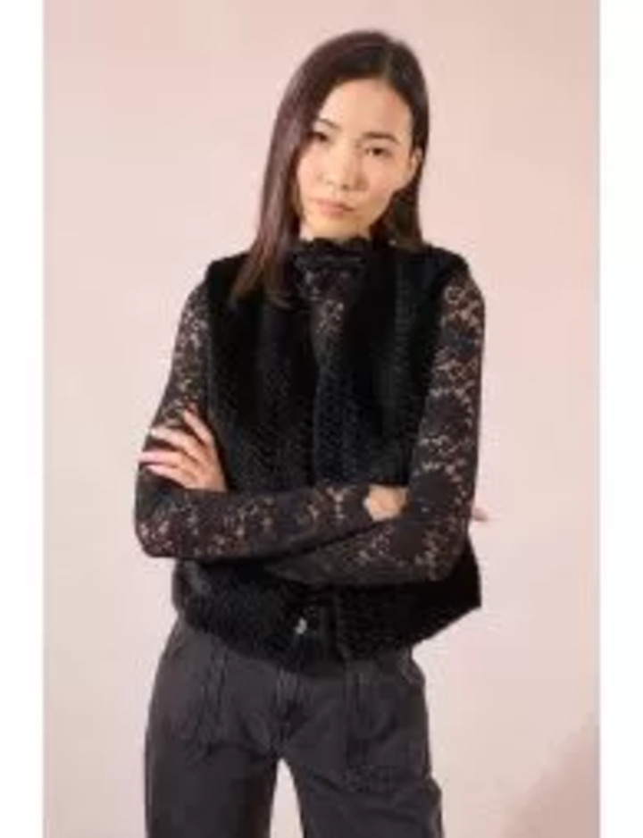 Semi-sheer lace top Black