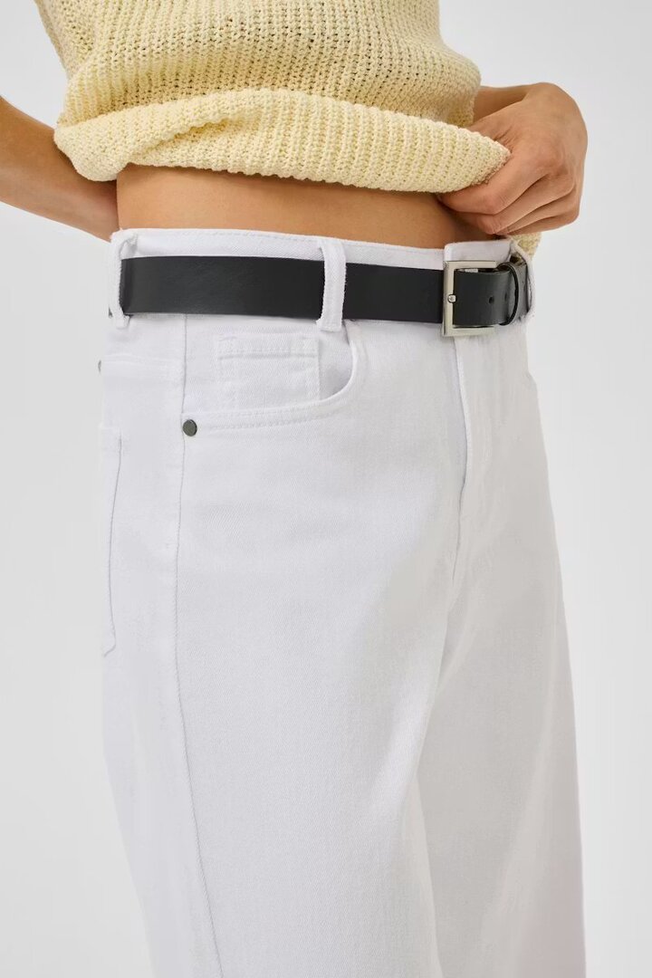 Wide-leg jeans have a straight cut and full length. Classic five-pocket design and zipper with button give a stylish and modern look.