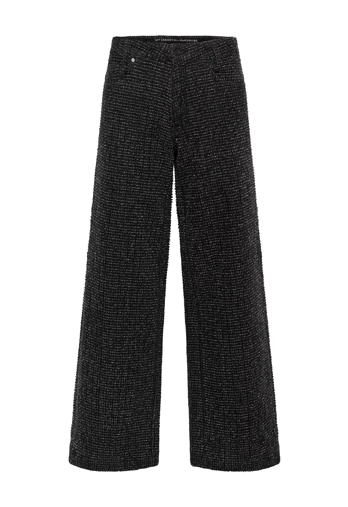 Wide leg pants feature a full length cut, textured finish, and five-pocket styling. The structured silhouette and mid-rise waist add a polished update to classic wide leg trousers.