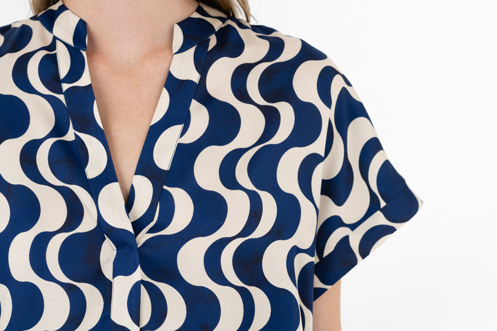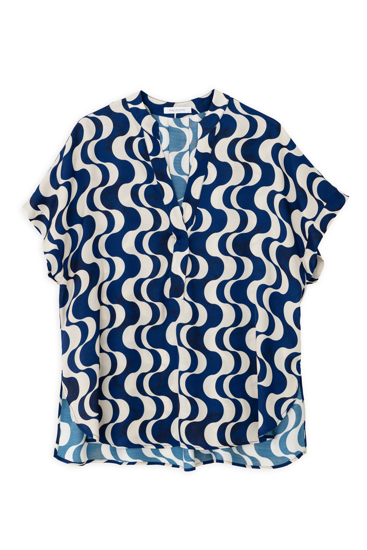SATIN PRINT SHORT SLEEVE BLOUSE BLUE
