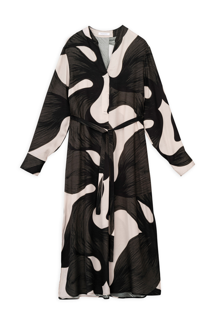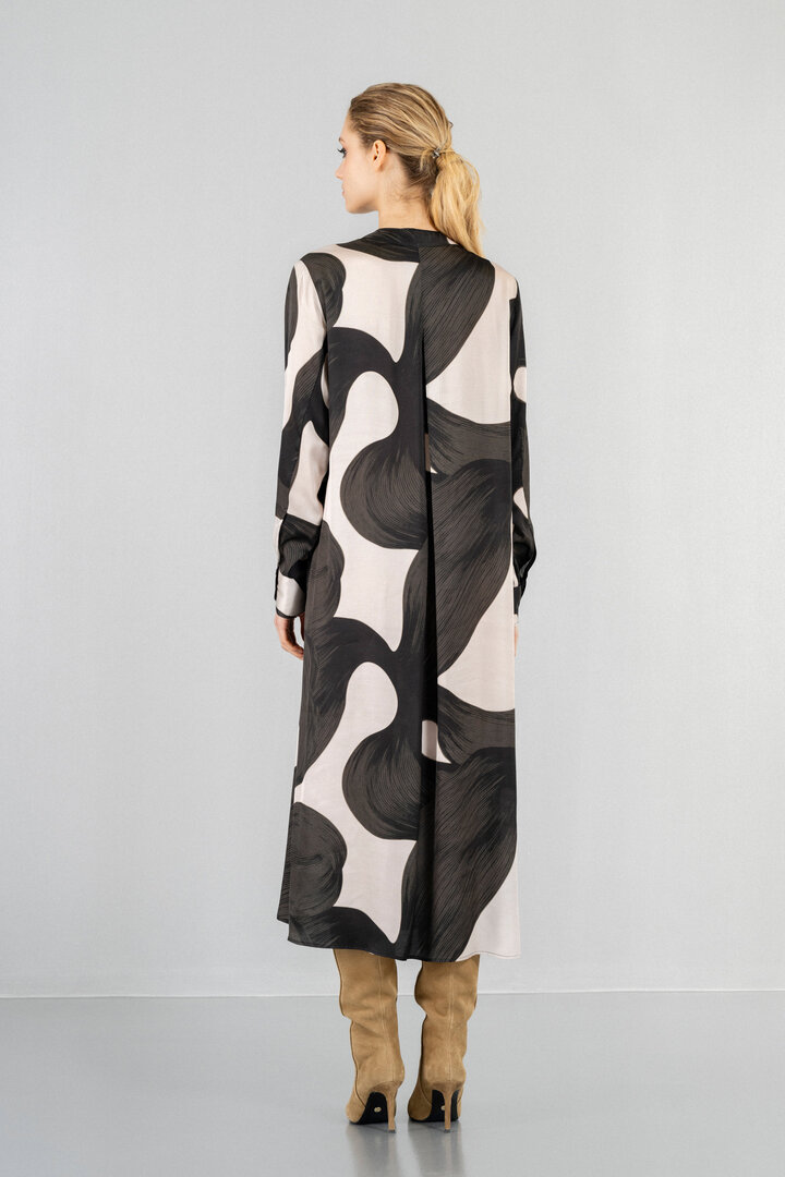SATIN PRINT MIDI DRESS OFF BLACK