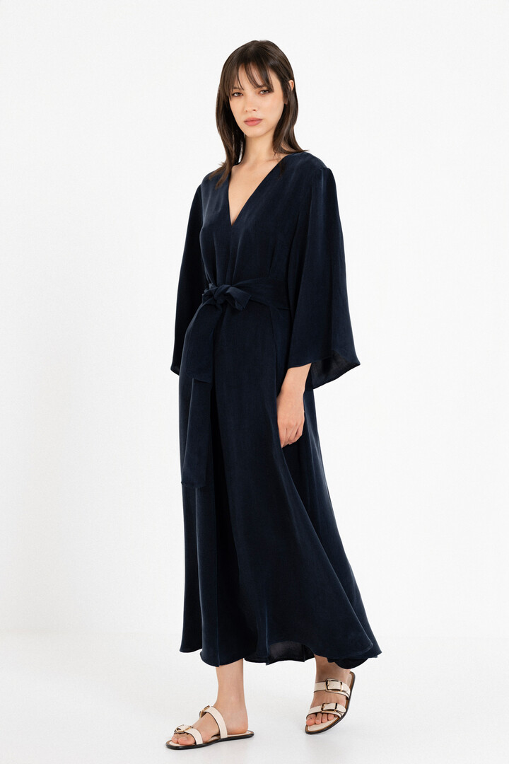 CUPRO V NECK DRESS DARK BLUE