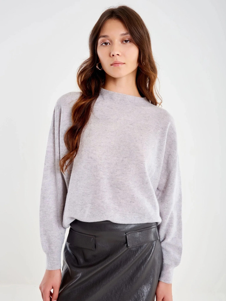Cashmere Blend Crater Neck Sweater Grey