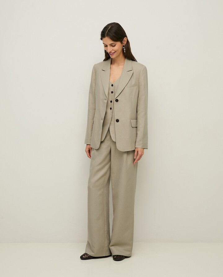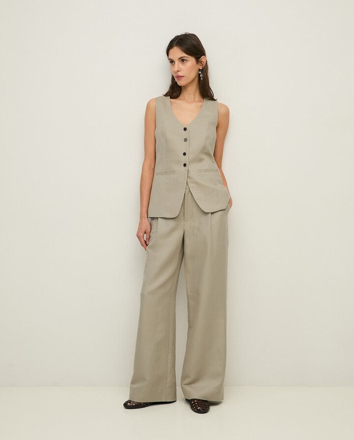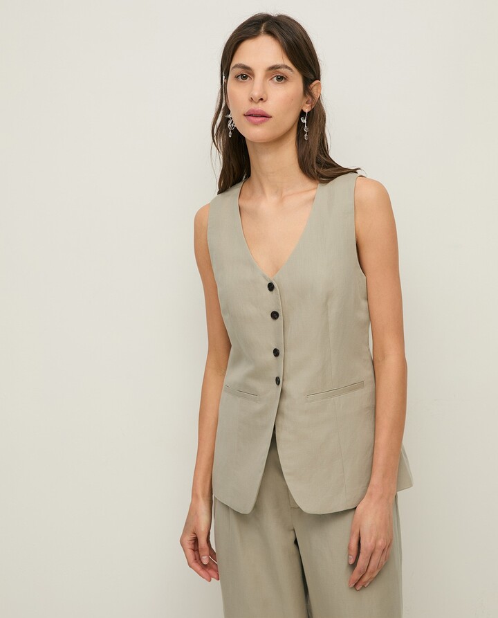 Linen-blend tailored vest Greenish Grey